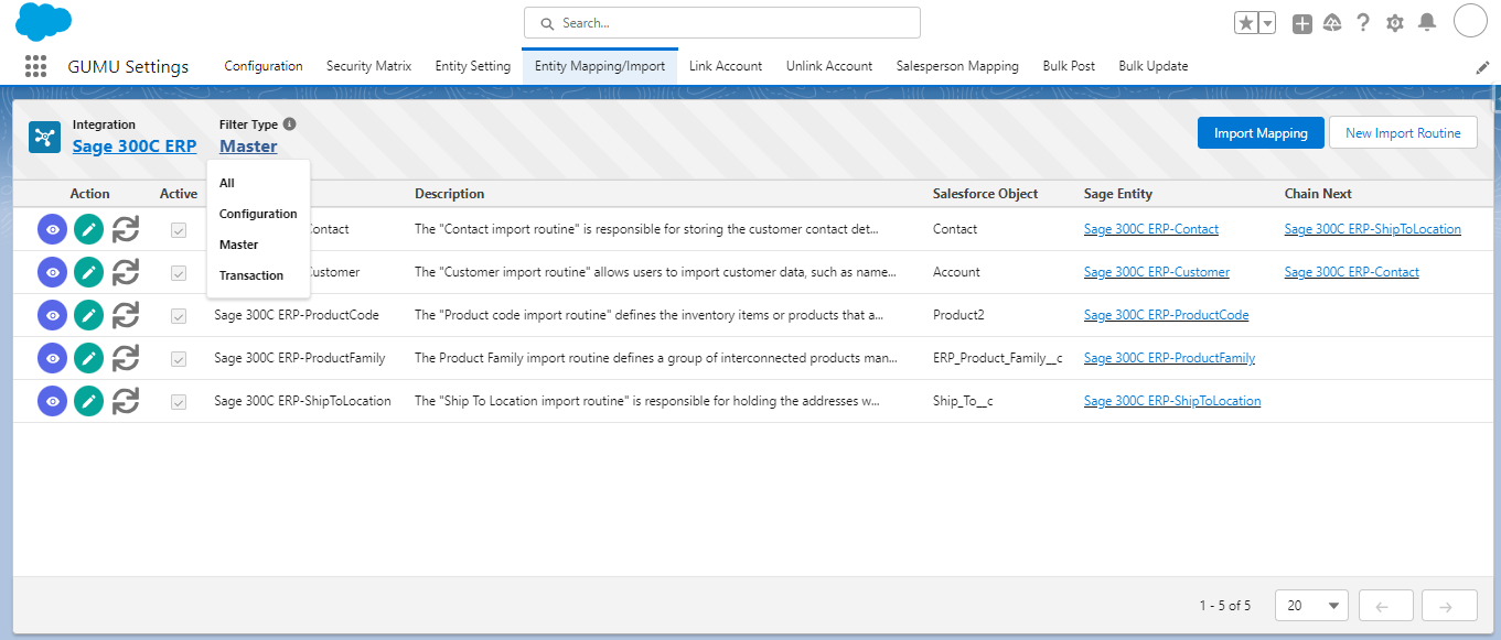 In this blog, we will be discussing the benefits of using the “Segregation based on Type of Import routine” to streamline data management processes and improve overall workflow. The type filter is (can be) applied to the standard (or Custom) import routines defined in the GUMU™ integration for bringing in the data from Sage system.