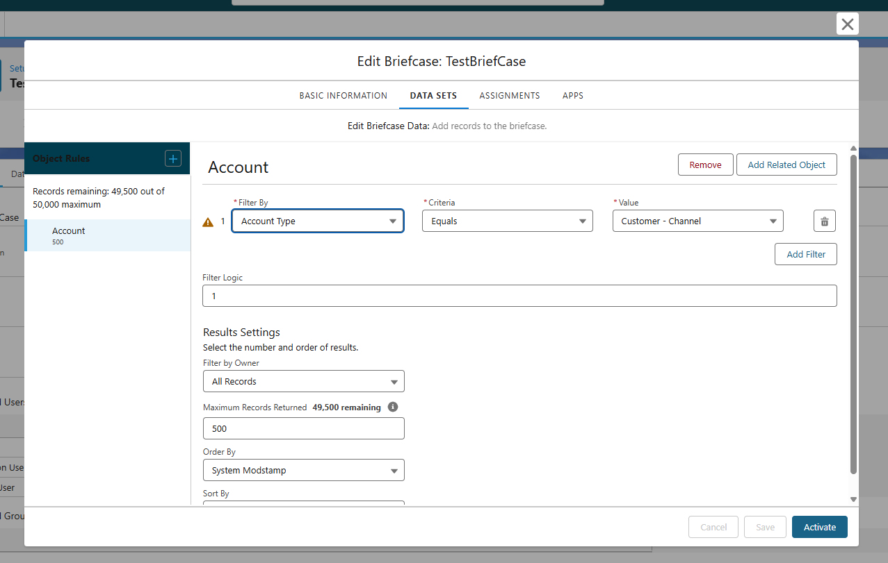 • Apply necessary filters (e.g., Accounts where Owner = Current User).