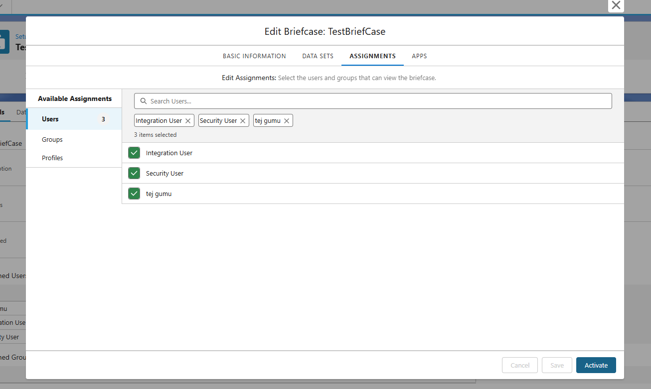 • (Optional) Use Run As User to preview how the briefcase will appear to the assigned user