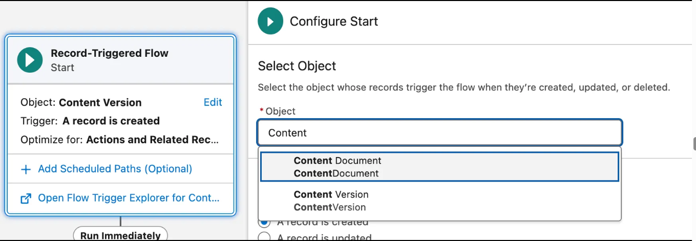 Salesforce Spring ’26 introduces a game-changing enhancement for admins and automation builders. Record-Triggered Flows can now start directly on file objects like ContentDocument and ContentVersion without requiring Apex code.