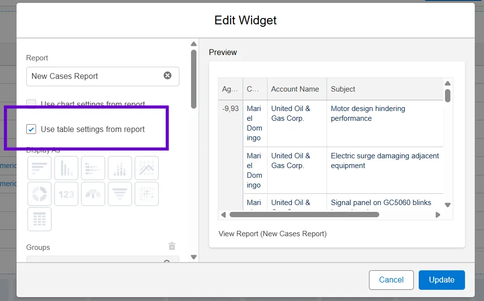 One of the most practical enhancements introduced in Salesforce Spring ’26 reporting updates is the ability to retain report table settings when adding reports to dashboards.