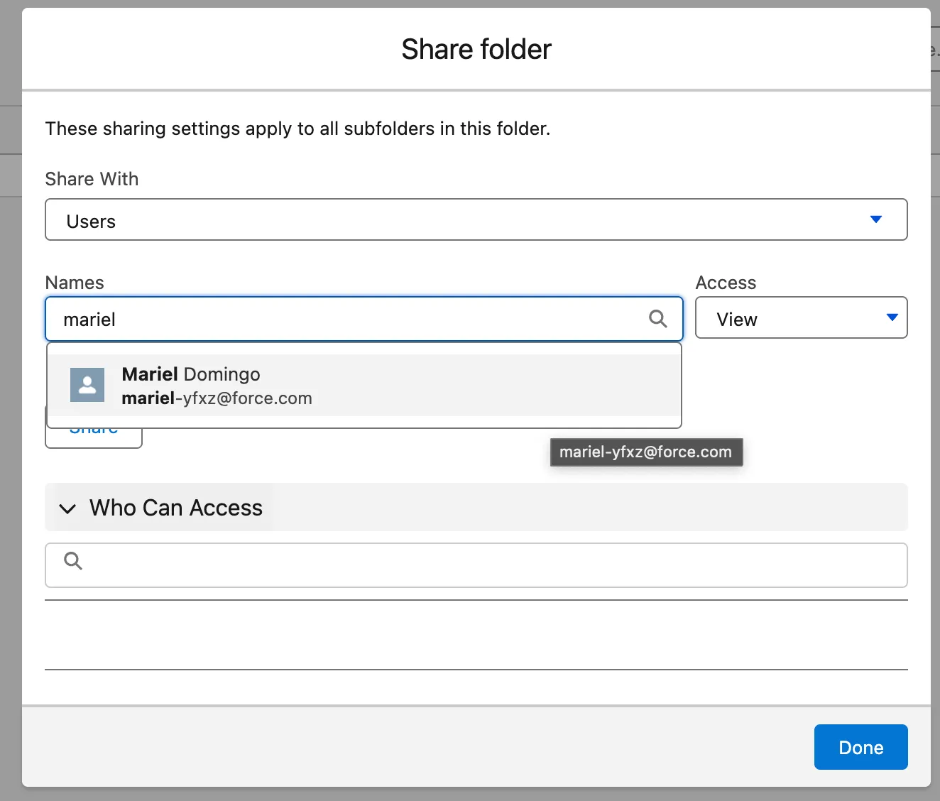 With the Spring ’26 update, administrators can now search and share report folders using unique usernames.