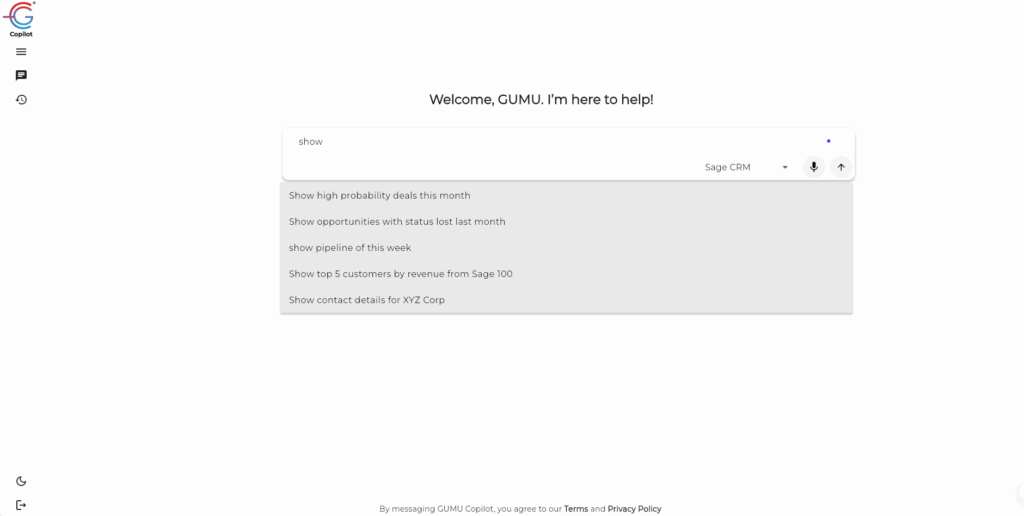 The flagship GUMU™ which is the primary ERP–CRM Integration Enabler has leveled up — evolving into an AI-powered Copilot built to not just connect systems, but elevate decision-making across enterprises.Instead of navigating multiple screens, reports, or dashboards, teams can now ask a question in natural language and get an immediate answer — backed by real business data.