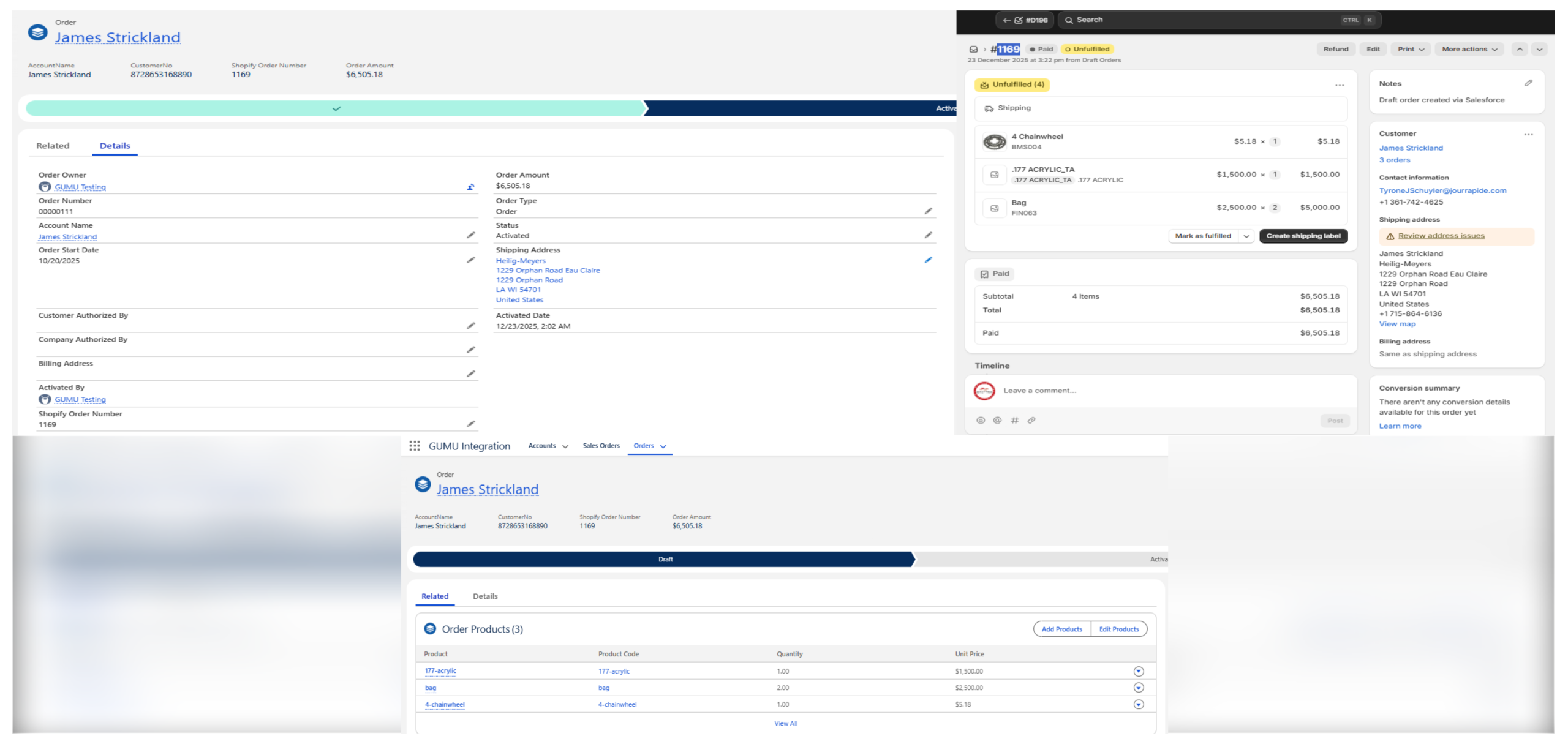 Every Shopify order appears in Salesforce with full context: customer info, payments, fulfilment details, and history.